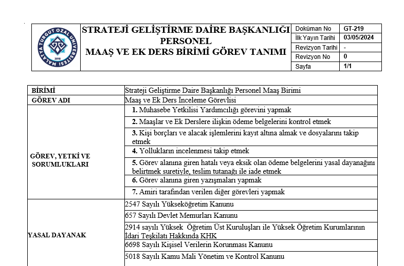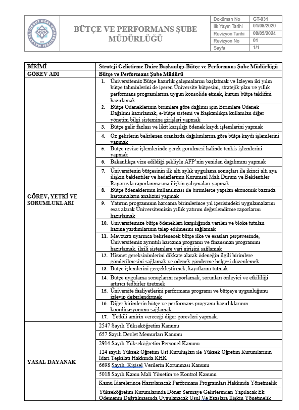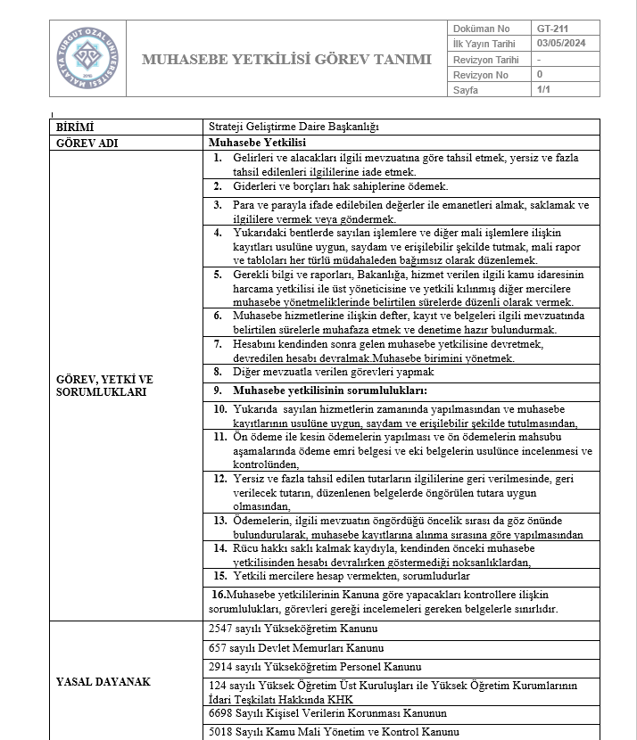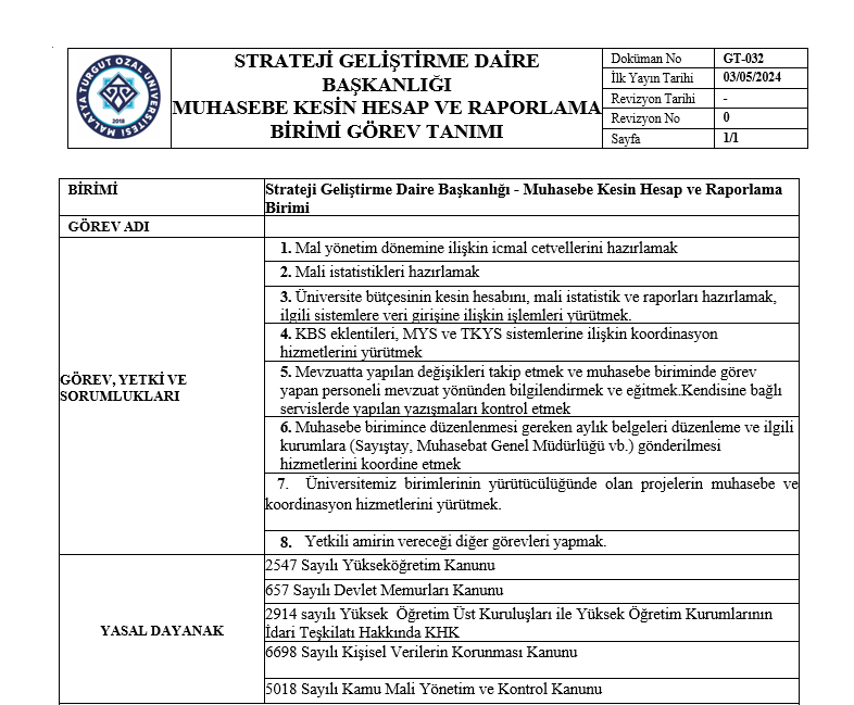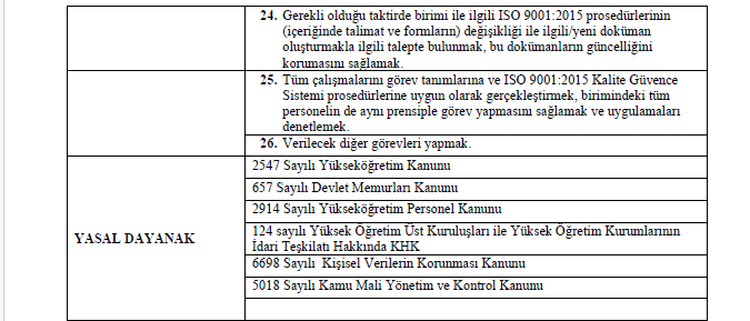 Görev Tanımları