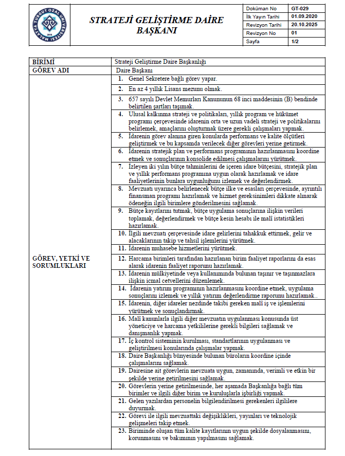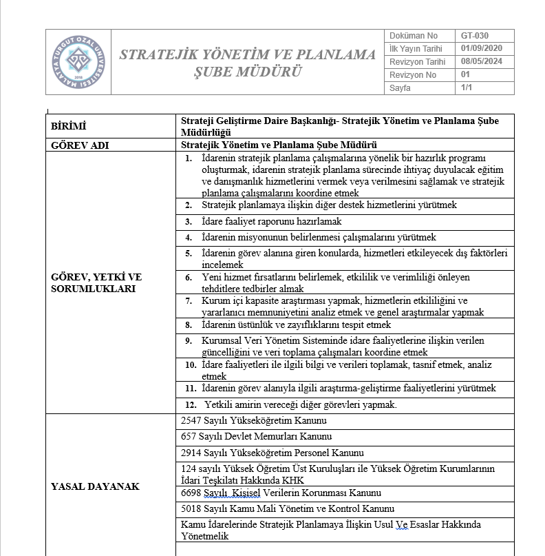 Strateji Geliştirme Daire Başkanlığı Genel Sorular